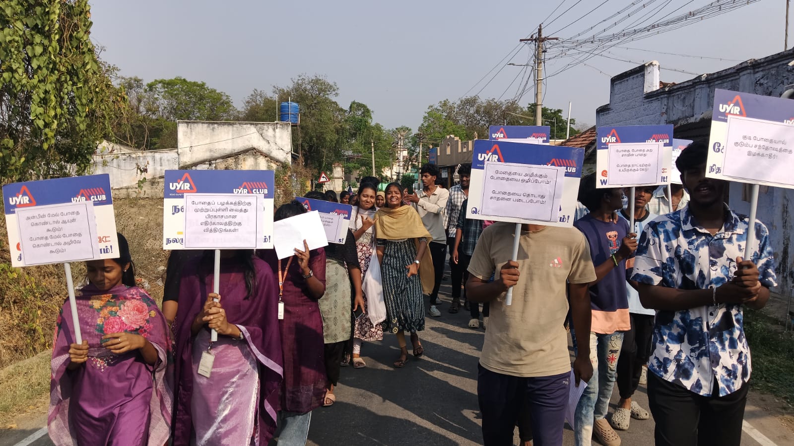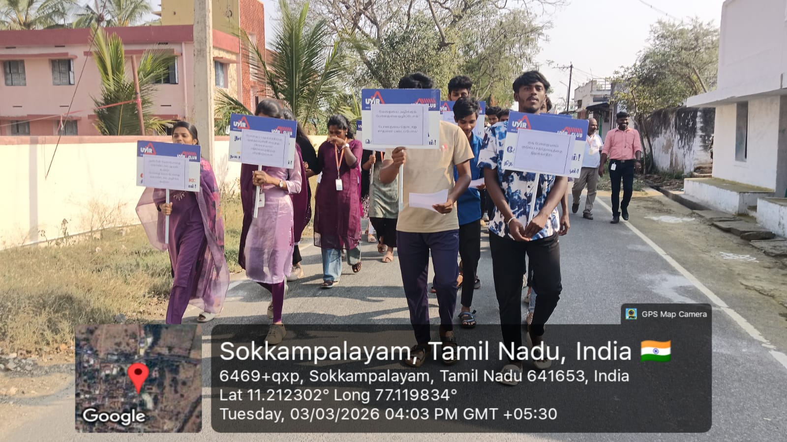 During the rally, students carried awareness placards and slogans highlighting the importance of staying away from drugs and leading a healthy life. The participants marched through the streets of Sokkampalayam, interacting with the public and emphasizing the message “Say No to Drugs.”