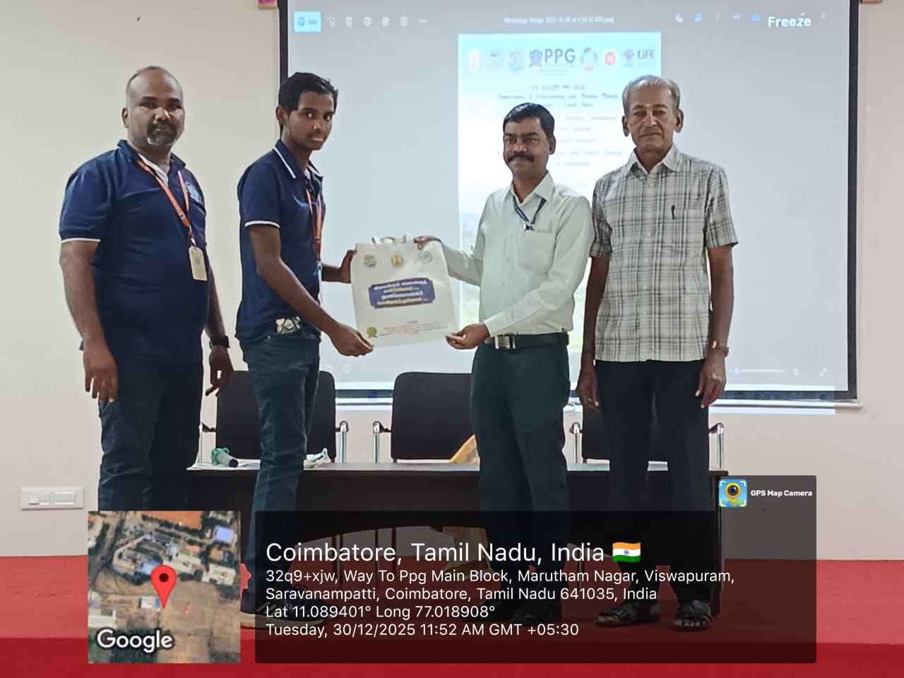 An Awareness Programme titled Workshop on Environment and Climate Change Initiatives in Tamil Nadu was organized by the TN EIACP PC Hub, Department of Environment and Climate Change, Government of Tamil Nadu, in association with PPG College of Arts & Science, Coimbatore and NSS on 30.12.2025 at 10:30 AM. The programme commenced with a welcome address by Thiru. N. Balusamy, Headmaster (Retd.), followed by the Presidential Address by Dr. N. Muthumani, Principal, PPG College of Arts & Science. The Special Address was delivered by Dr. K. Muthukumar, Programme Officer, EIACP, who explained climate change issues and various environmental initiatives undertaken by the Government of Tamil Nadu. The session emphasized environmental conservation, sustainable development, and the Life movement. A total of 50 students actively participated and interacted during the programme. The participants gained valuable knowledge on climate change and eco-friendly practices. The session created awareness about the importance of environmental responsibility. Students were motivated to adopt sustainable lifestyles and participate in conservation activities. The programme was found to be informative and engaging. The resource person’s presentation was well appreciated by the participants. The event enhanced environmental consciousness among students. The Vote of Thanks was proposed by Dr. V. Haridas, NSS Officer. The programme concluded successfully with positive responses from students and faculty.
